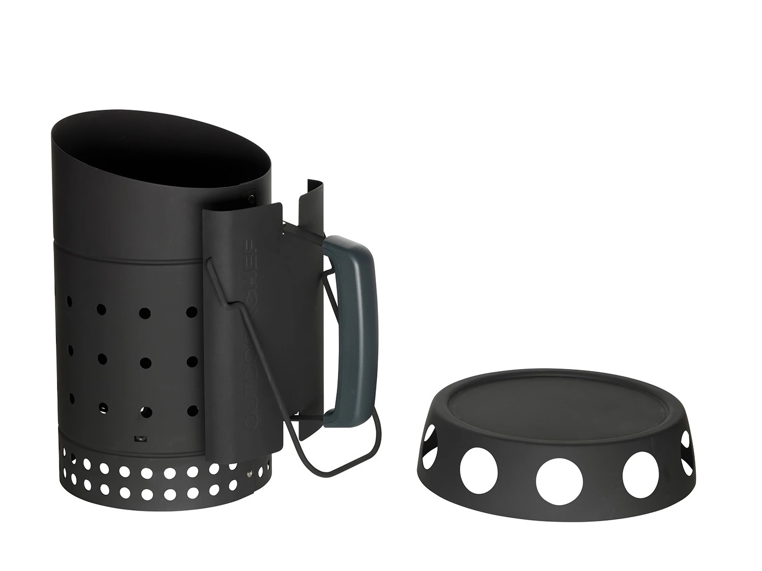 Praktischer Helfer beim Entzünden des Grills: Der Anzündkamin von Outdoorchef sorgt schnell und effizient für glühende Kohle und Briketts. Dank optimierter Bauweise entsteht sehr schnell ein Zug im Inneren des Kamins, durch welchen die Glut weiter angefacht wird.