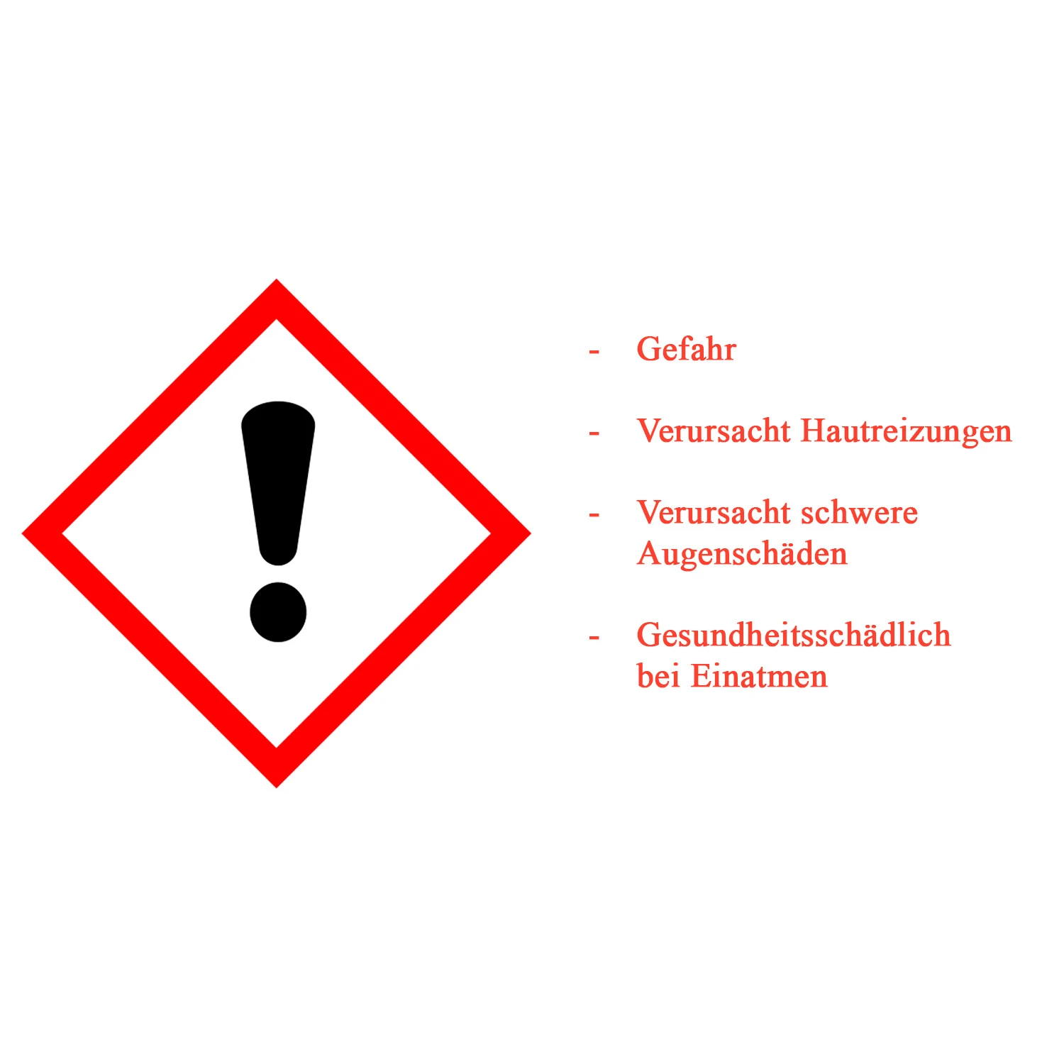 Sicherheitshinweise: Gefahr. Verursacht Hautreizungen. Verursacht schwere Augenschäden. Gesundheitsschädlich bei Einatmen.